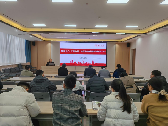 报告中,王耀文结合自身工作经验,立足学校统战工作实际,从中国共产党统一战线史回顾、习近平总书记关于做好新时代党的统一战线工作的重要思想、《中国共产党统一战线工作条例》、统战工作重要会议精神和如何做好高校统战工作等五个方面,阐述了新时代加强统战工作的重要性和必要性,就深刻把握习近平总书记关于做好新时代党的统一战线工作的重要思想重大意义和核心要义,深刻认识高校统战工作面临的形势,充分发挥统一战线的强大法宝作用作了深入讲解。他提到,必须坚持大团结大联合这个主题,坚持和加强党对统一战线工作的集中统一领导,坚持和完善大统战工作格局。要坚持一致性和多样性统一这一指导方针,加强思想政治引领,广泛凝聚共识。要紧紧围绕“培养什么人”这个教育的首要问题,坚持党的教育方针,坚持“为党育人为国育才”初心使命。