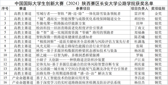 近日,中国国际大学生创新大赛(2024)陕西赛区比赛结果公布。学院师生在本次大赛中表现出色,16个项目获得奖励,其中金奖1项、银奖5项、铜奖10项,金奖项目被推荐参加全国决赛。