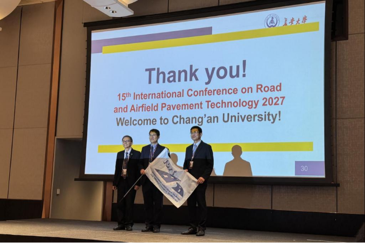 During the conference, the delegation actively participated in the opening ceremony, keynote speeches, and parallel academic sessions. They delivered presentations and engaged in in-depth discussions on topics including smart aggregates, pavement performance testing, and sustainable paving materials. At the closing ceremony, Professor Ma Feng, Vice Dean of the Highway College, delivered a speech as the representative of the host of the next conference (the 15th ICPT). He introduced the preparatory work for the upcoming event and participated in the flag-handover ceremony.
