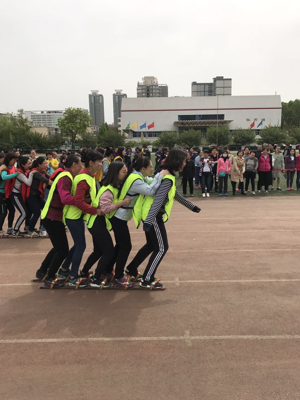 为了贯彻落实文体活动的“广泛性、群众性、健康性、竞技性、趣味性、文化性”,营造健康向上的校园文化氛围,培养教职工良好的体育锻炼习惯,提高教职工身体健康素质,校工会于2017年4月20日上午在校本部北院体育场(足球场)举办了以“享受运动快乐、拥有健康体魄”为主题的教职工趣味活动,活动项目包括:夹乒乓球与投沙包接力比赛(8女8男)、足球踢准接力比赛(8女8男)及五人木质协力竞走接力比赛(5女5男)三项。